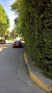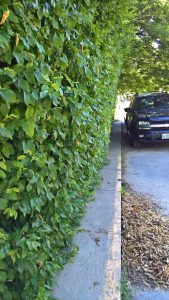 Hedge approximately 20 years old. – needs a yearly pruning.