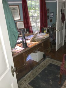 The Office had an extra room added for a half bathroom. We formed an office with a rest room from the old bedroom.