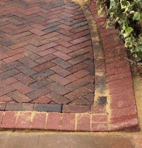 What you cannot see, is that these are natural bricks, selected because they are softer looking, colour fast ( they do not bleach with time as a concrete block does) and because they are ‘fired’ they are not all the same size or shape. This is significant because it is almost impossible to lay a continuous pattern without it running out of line, it takes quite a bit of skill to get it just right.