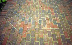 Recessed manhole access covers cut into drylay brick paving Can you see the second manhole cover ?