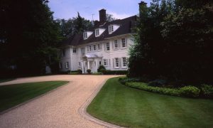 Triple brick drainage channel set around a bonded gravel drive