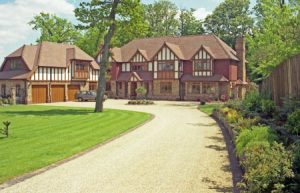 Practically to let a driver know they were nearly off the driveway.Some larger homes benefitted from a less expensive softer appearance as below when we used a bonded ( with fibreglass resin) gravel drive with brick gulley detail.