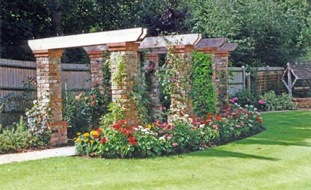Brick makes a very attractive pathway or perhaps for the busy executive, a pathway that’s covered by a pergola on either side…