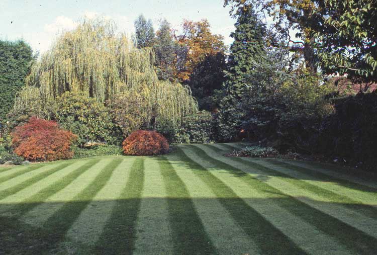 We were often asked how it was that most lawns had these long lasting “stripes”. The secret is two fold, first the mower used has to have a roller behind the cutting blades, it can be a rotary mower, although the best is obviously a cylinder mower, also the roller should be the drive method for the mower .
